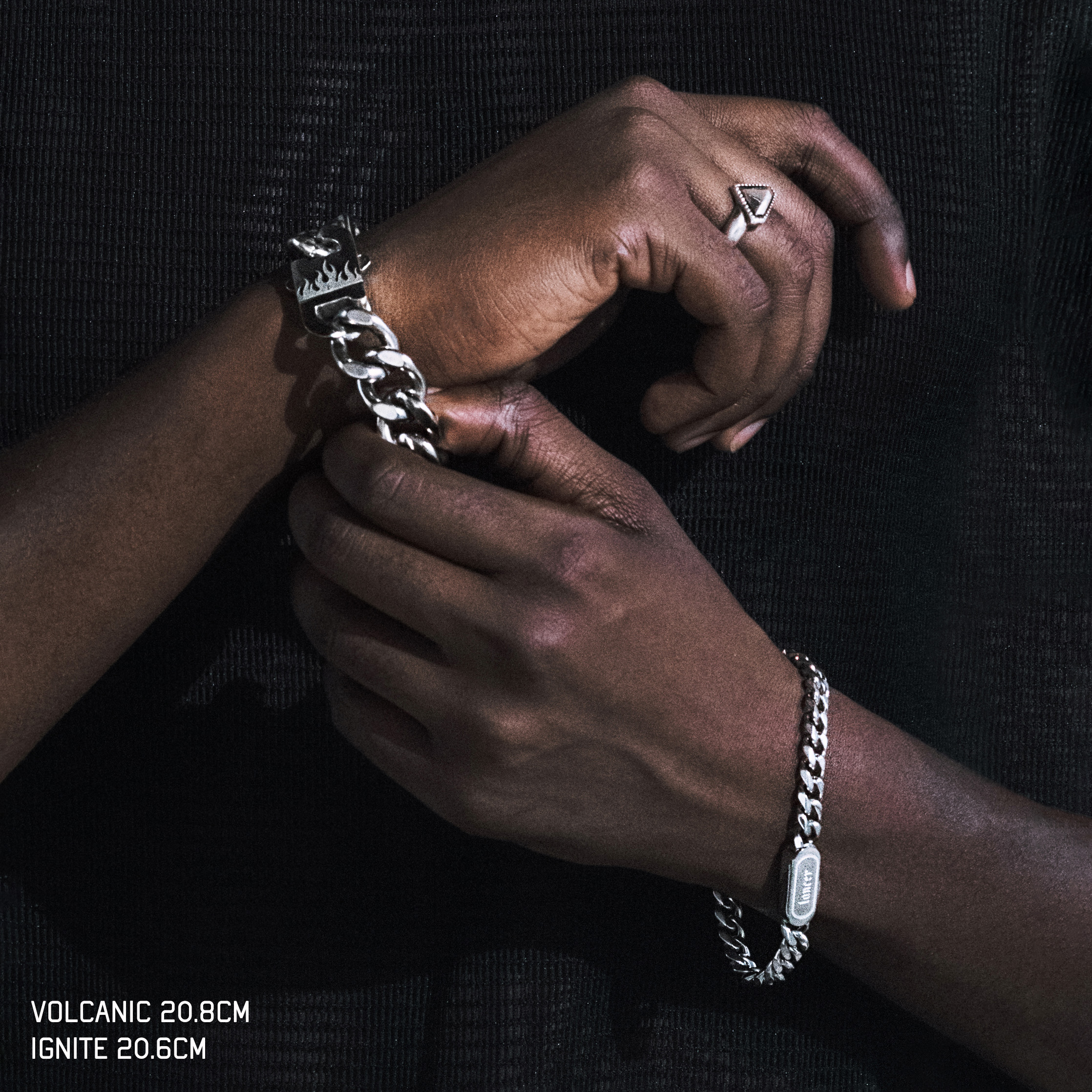 With the LANCER wordmark logo engraved on the reverse side, the double-sided clasp can be worn facing up or down. The Volcanic redefines industrial metalwork with a fearless heavy aesthetic and meanwhile an original and distinctive detailing.